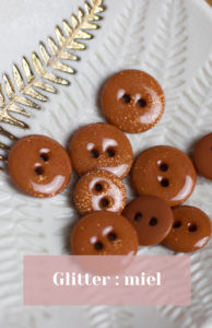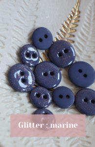 Ceux-ci sont nos chouchou de la gamme ! Délicatement pailletés, ils apporteront un plus à votre joli vêtements. Ils existent en deux tailles, 12mm et 15mm ce qui permet de pouvoir les mettre sur différents projets. Les plus petits se marierons à merveille sur vos chemises et blouses, tandis que les plus grands sont très bien adaptés aux projets tricots car leur épaisseur évite qu’ils ne s’échappent régulièrement de leur boutonnière mais également pour les robes et jupes boutonnées.