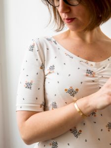 Pour célébrer cette nouveauté, un motif qui siéra aux petit(e)s comme aux grandes : Harmonie. Il porte bien son nom avec une composition éponyme de petits bouquets dont les fleurs roses, beiges, nudes s’accorderont avec toutes les teintes de peau. Un t-shirt femme, une robe fillette, un ensemble d’intérieur, un trousseau de naissance, tous les projets sont envisageables ! Vous serez sans aucun doute conquis(es) par ce jersey à la tenue parfaite !