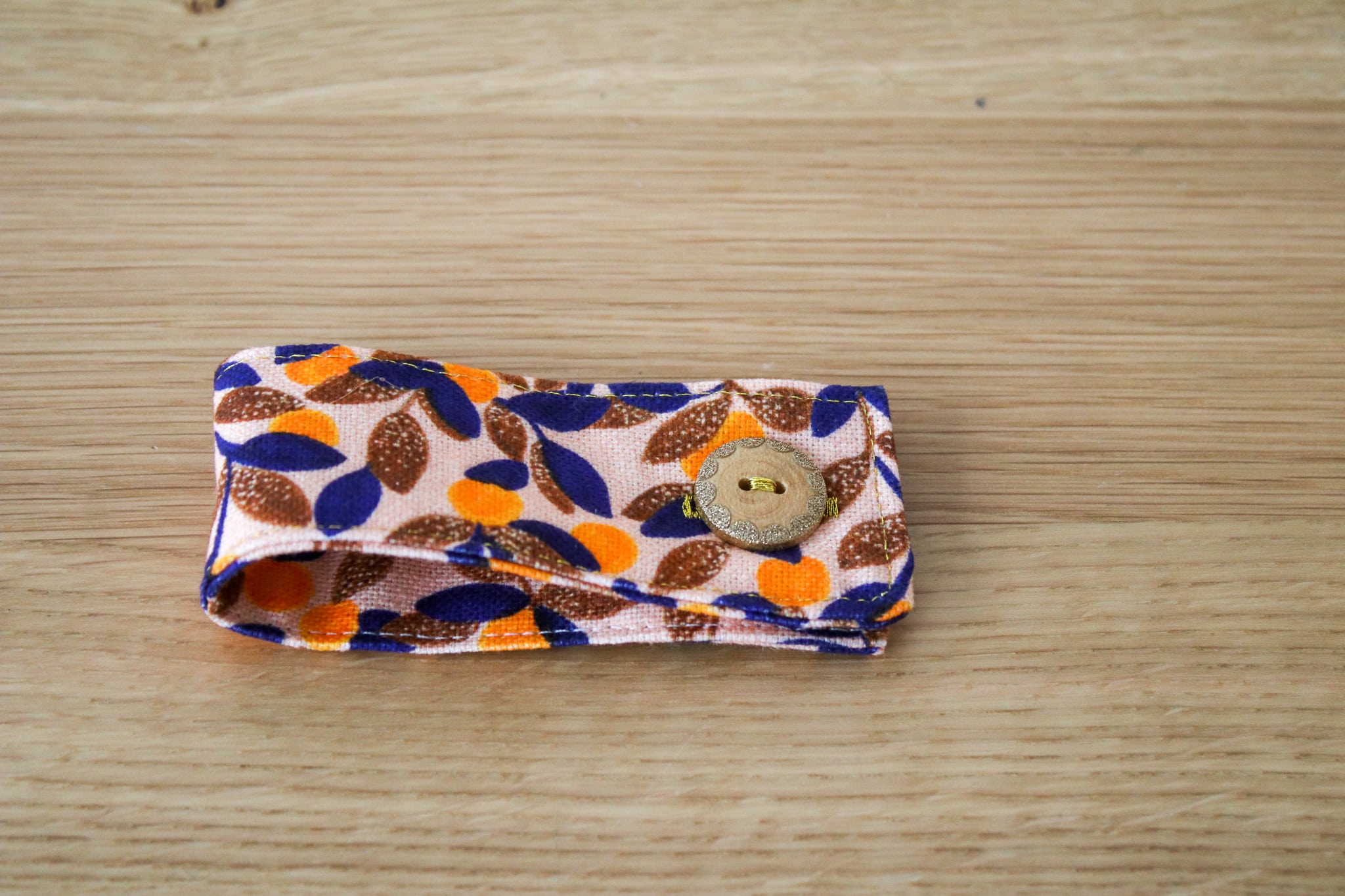 Brodez la boutonnière sur l’endroit et cousez le bouton à l’autre extrémité sur l’envers.