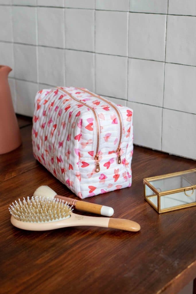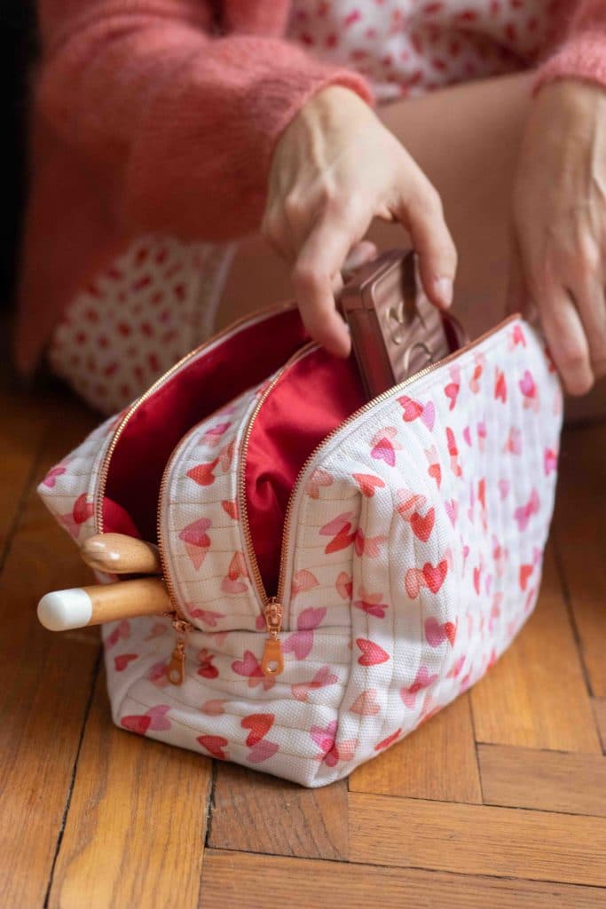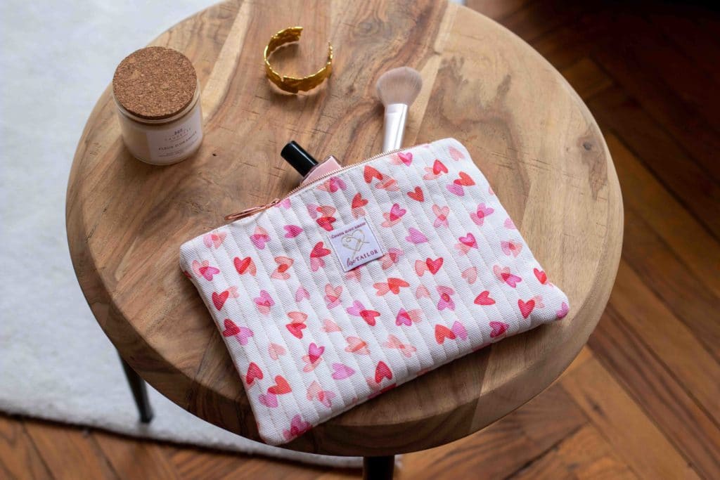 Pour l’occasion il y aurait bien sûr des accessoires, comme Lise P. avait l’habitude de proposer à chaque collection. C’était l’occasion parfaite pour lancer le vanity, projet sur lequel Lise P. travaillait déjà depuis plusieurs semaines/mois. Pour l’anecdote, le vanity final a finalement été légèrement modifié par rapport à celui des photos. Nous avons préféré le faire plus large pour qu’il soit plus facile et agréable à coudre.