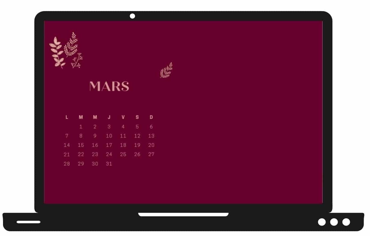 Les CalendriersCalendrier – Mars 2022 Publié le 25 février 20221 mars 2022 par Mathilde Petit 25 Fév Bonjour Mars 2022 ! Vous pouvez télécharger nos calendriers pour organiser votre mois : › Version téléphone › Version ordinateur › Version A4 Nous vous souhaitons un très bon mois avec un peu de temps pour créer ! Les Coulisses #12 Les Coulisses #13