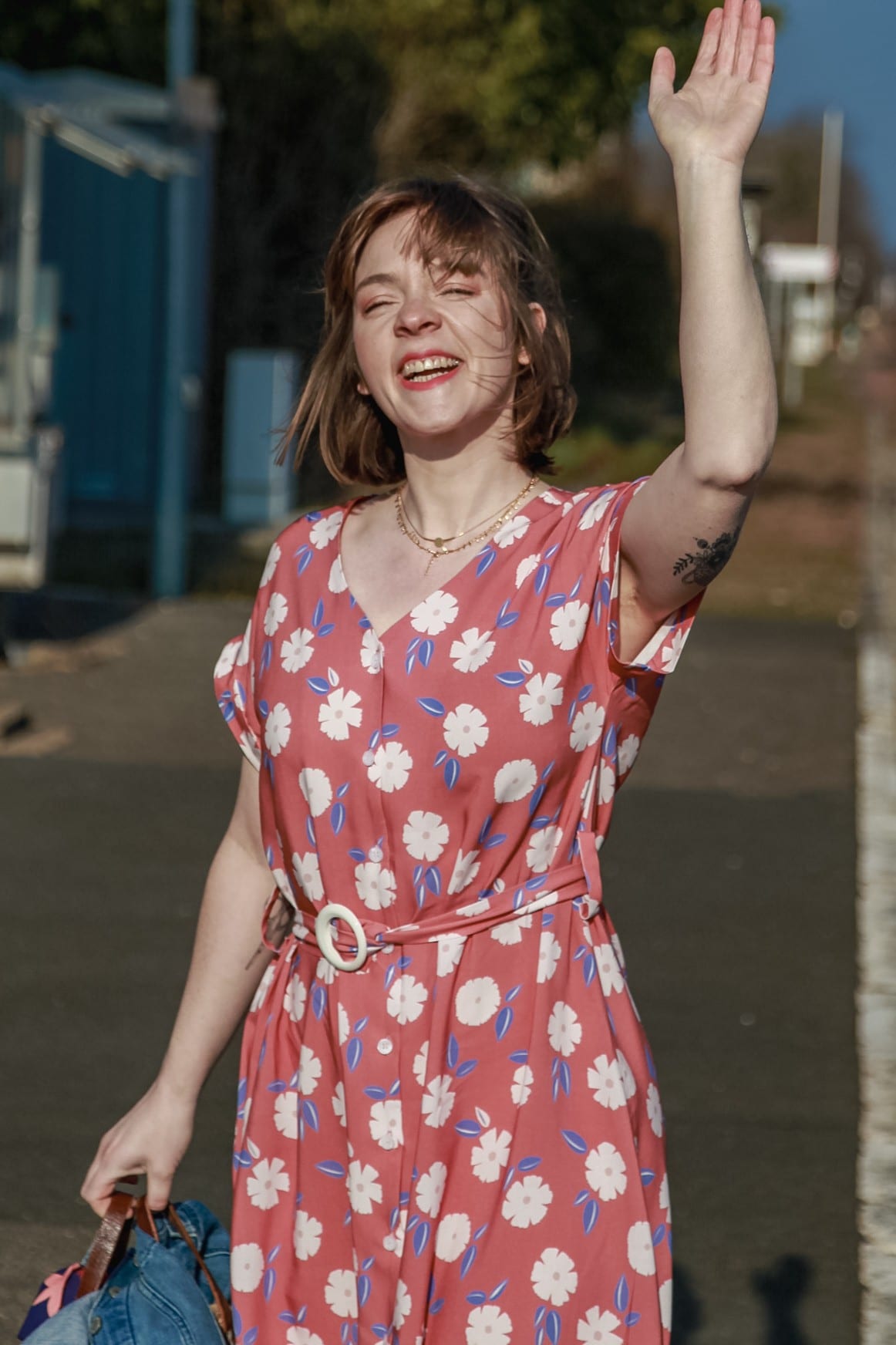 » La deuxième copine s’apprête à prendre son train dans sa robe légère, printanière, un brin rétro pour aller retrouver son amie pour un week-end couture.