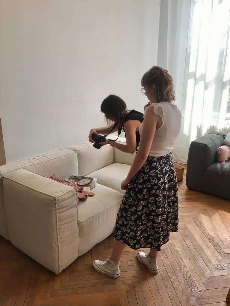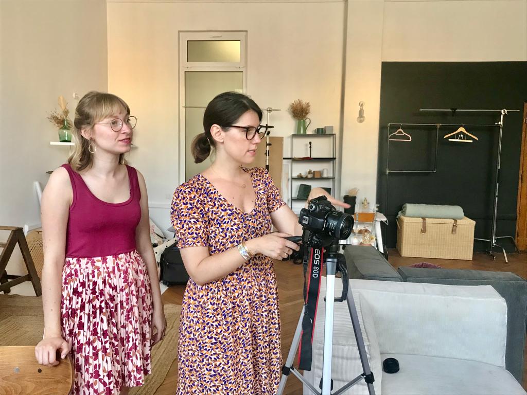 Faire de jolies photos demande beaucoup de travail en amont. Nous avons profité du lieu que nous avons loué sur plusieurs jours pour prendre également en photos quelques réalisations cousues avec les tissus automne-hiver.