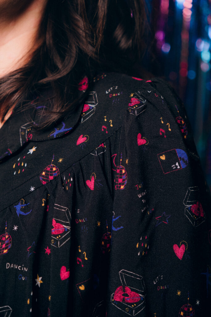« Cette capsule audacieuse s’inspire de l’énergie disco des 70’s, mêlant motifs vibrants et couleurs funky. Chaque pièce est une célébration du mouvement et du glamour, parfait pour des créations qui brillent jusqu’au bout de la nuit ! «