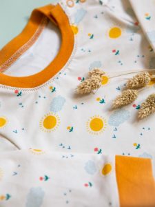In this collection you will meet our jersey fabric again. Still printed and an organic basis and with an irreproachable quality, it is available with our pattern Sunshine. Happy, bright and unisex, Sunshine is perfect for baby and kids garments. Its excellent retractibility ensures durability and comfort.