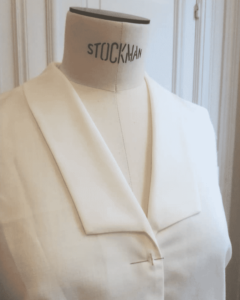 I used the construction of the shawl collar and instead of the rounding I created an angle. After a few changes I’m happy to get the idea I had in mind.