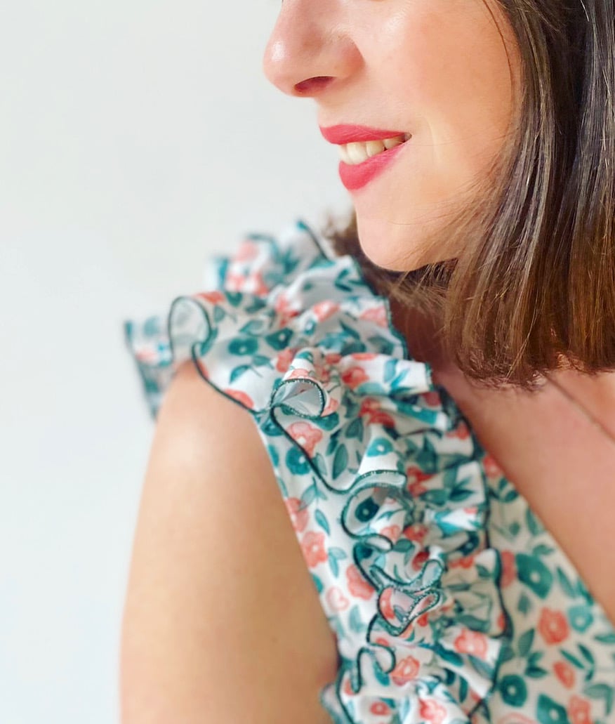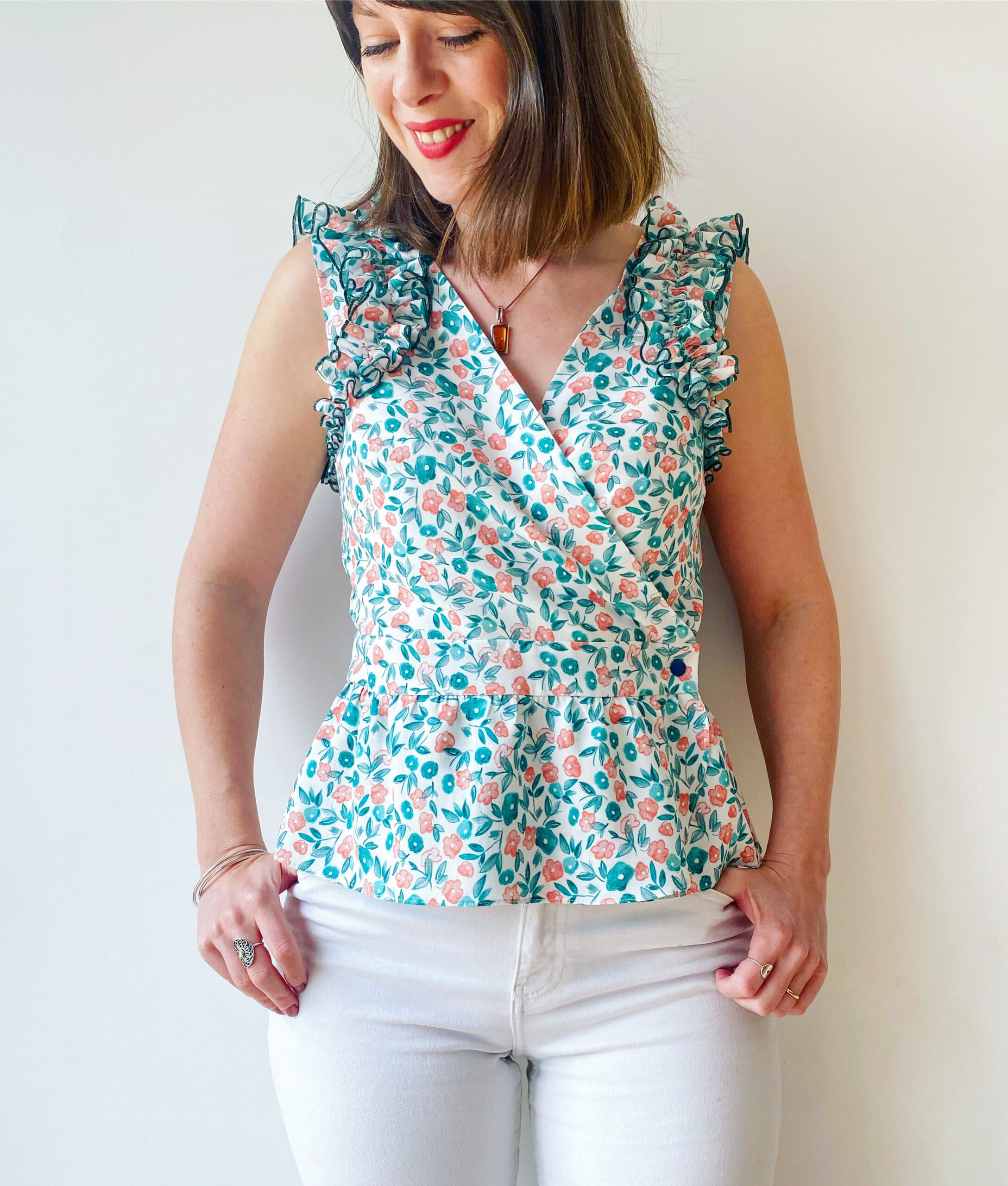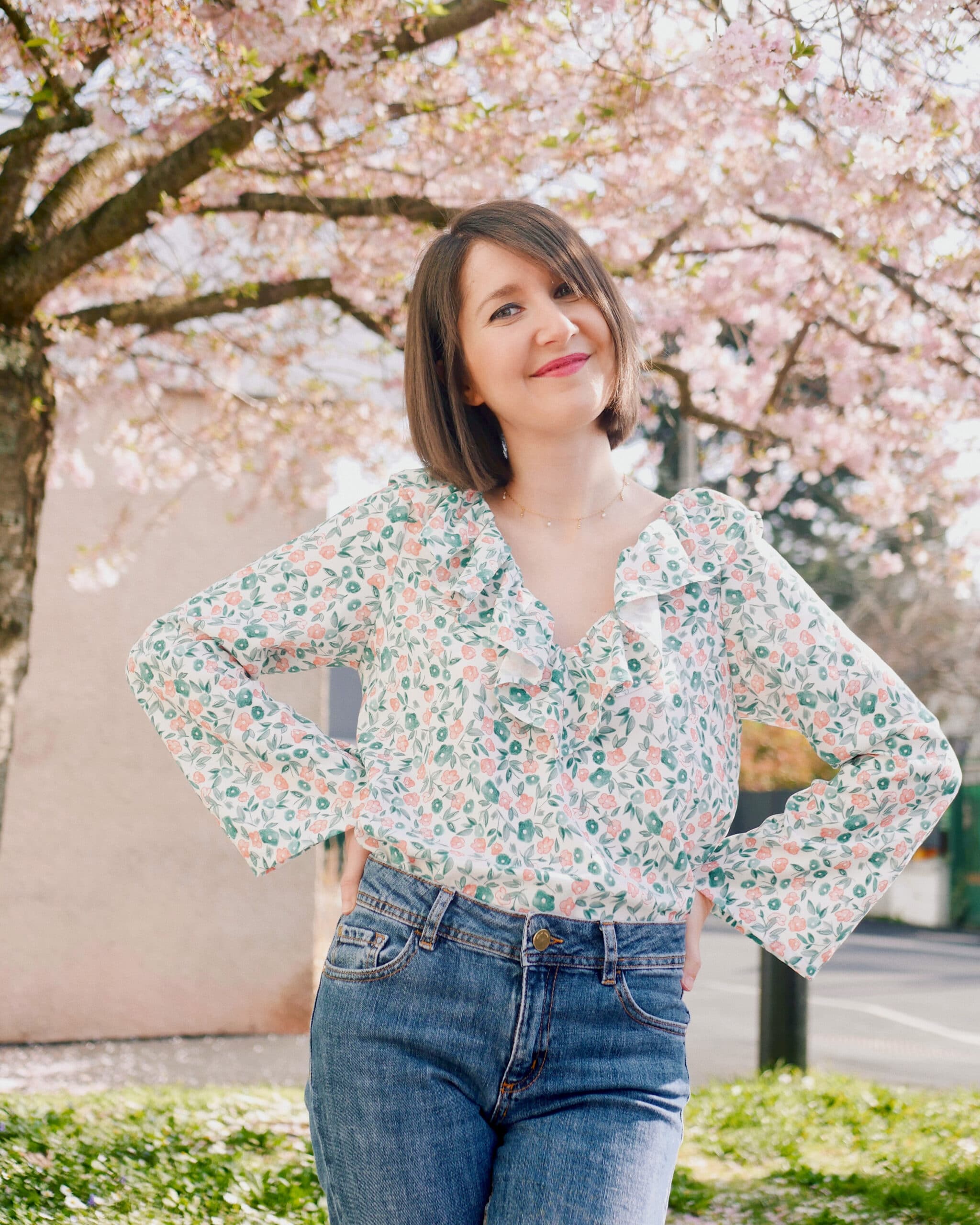 “The perfect combo for the arrival of spring! I was lucky enough to discover and sew my choice of fabric from Lise tailor’s new collection. I’ve always loved their work and their cheerful patterns, which always inspire pretty sewing. As for this viscose, a real pleasure to sew and to wear. I hope you like it and that it will make you want to sew a nice spring blouse 😉“