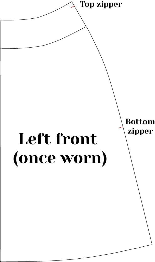 The assembly remains that of the tutorial with the exception of the following steps. For these you will need all your cut pieces and an invisible zipper.