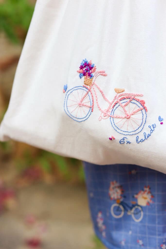 The fabric: Bicyclette bleu is a soft, fresh cotton satin, perfect for projects that require a little structure