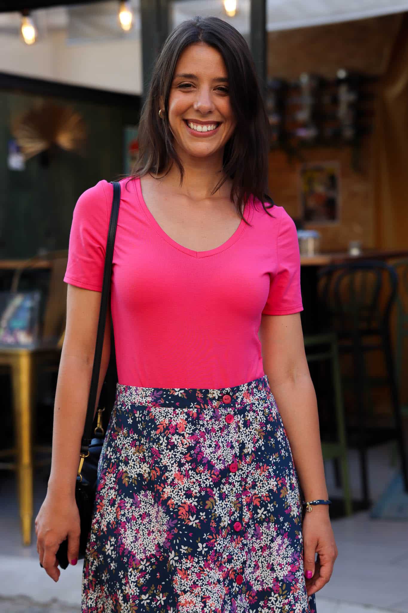 After a day under the southern sun, we swap our swimsuit for a pretty, more polished outfit: the midi skirt instantly dresses us up. We choose a colorful bodysuit, a bracelet to match our skirt, and that’s it.