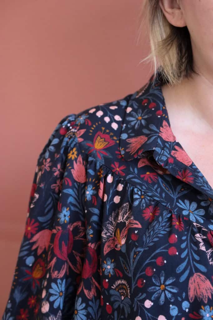 Pimpante is the classic shirt revisited by Lise Tailor. The yokes on the front and back highlight the pretty play of volumes.