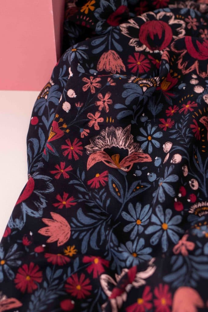 For fabrics sold by the meter, we mainly work with viscose. A fabric that is easy to sew because it is fluid but stable; perfect for sewing pretty dresses, blouses, skirts or shirts. Our viscoses with exclusive patterns are printed in France, in Rhône Alpes. We work with a French factory with know-how recognized for several decades as a Living Heritage Company. Our factory is Oeko Tex, FSC (i.e. not from deforestation) and REACH (Registration, Evaluation and Authorization of Chemicals) certified.