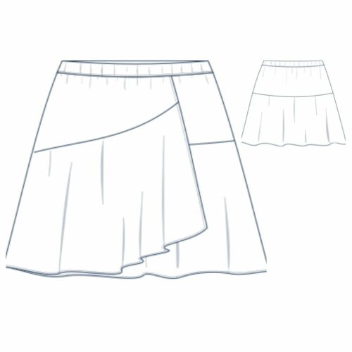 To sew this skirt, fluid fabrics are recommended: viscose, crepe, silk, satin cotton… The pattern has been drafted for woven fabrics.