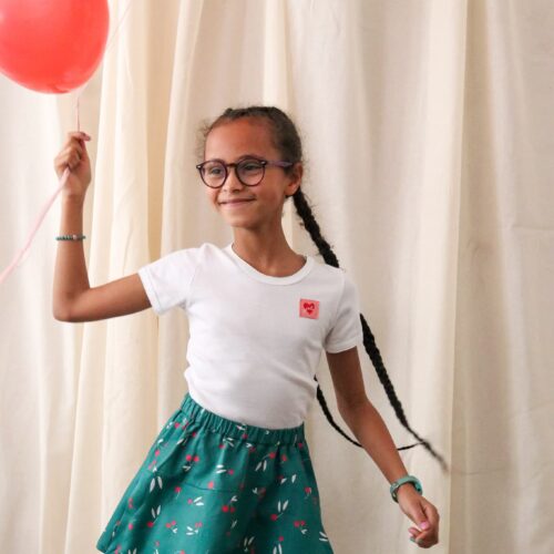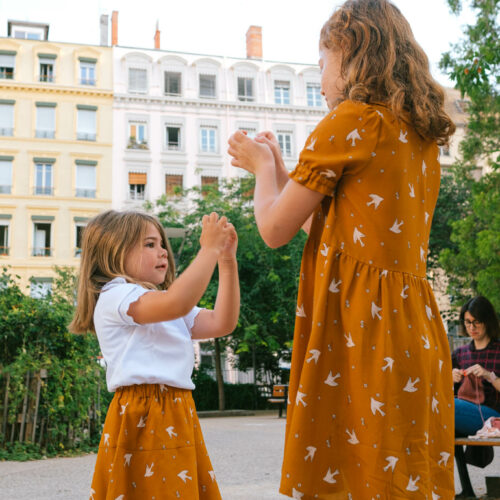 Designed to be easy to wear and comfortable, the “petite” Bliss skirt is also easy to sew. Its elastic at the waist allows it to be adjusted easily to the child’s waistline and ensures comfort when worn. A little extra for light summer fabrics: a lined version is offered in the tutorial.