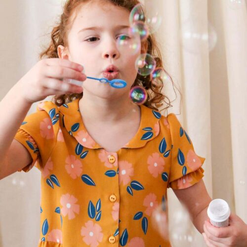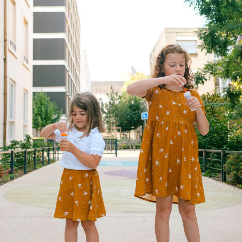 “Petite” Comète has been designed for the comfort of children. We opted for a gathered size unlike the adult version which is elasticated at the waist. So little girls are free to move around to play!