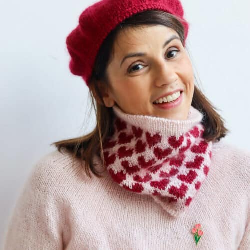 The cowl Amour is the perfect project to learn the jacquard technique.