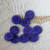 Little flat button, with two holes, made of a slightly shiny polyester. Sold by unit.