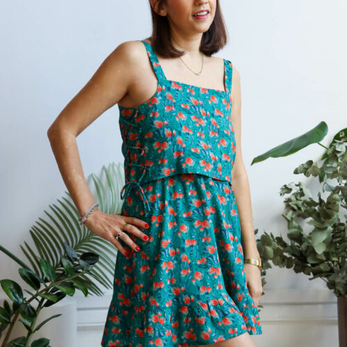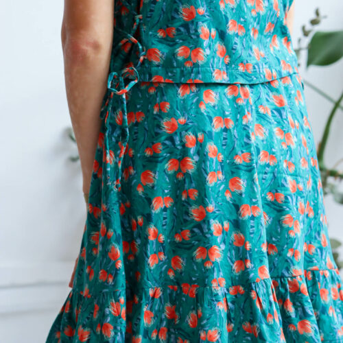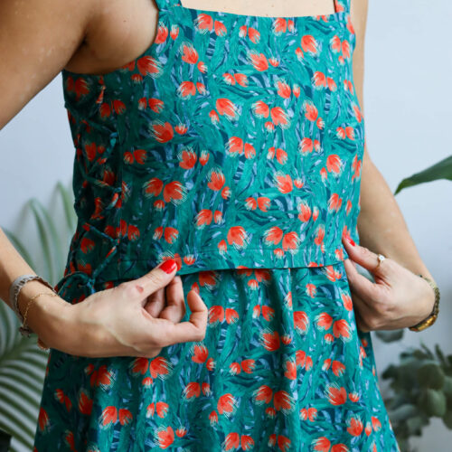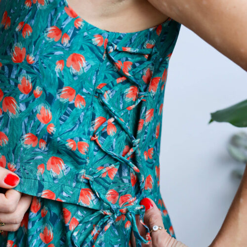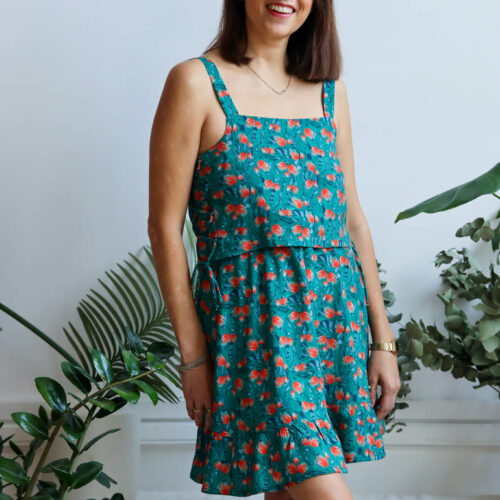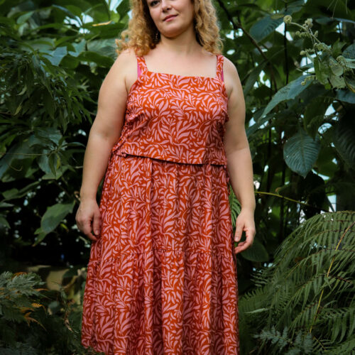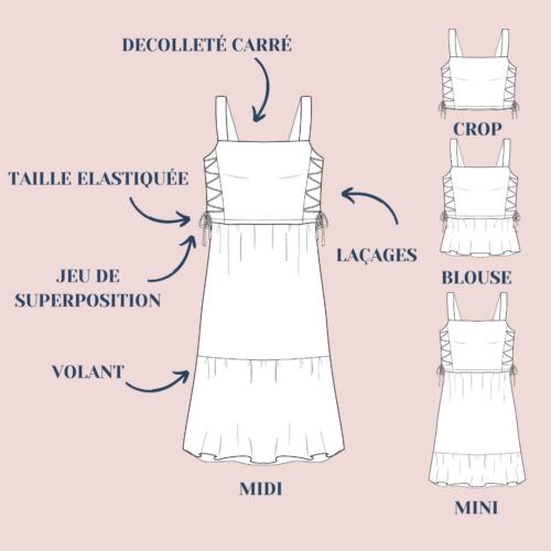 To sew this dress we advise to choose a fluid fabric such as viscose, satin cotton, viscose crepe… The pattern has been drafted for woven fabrics.