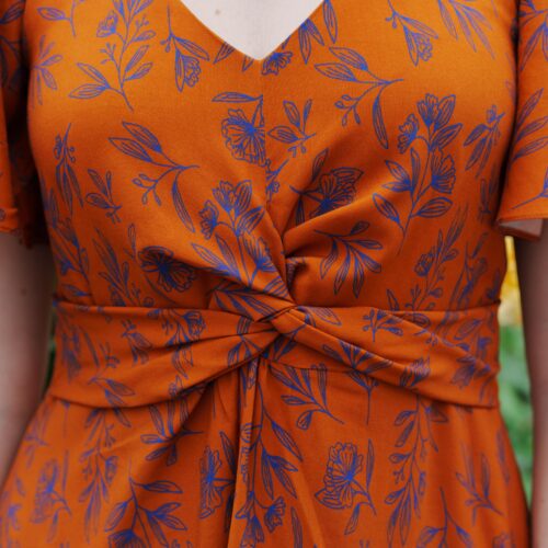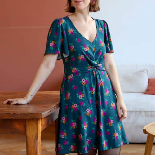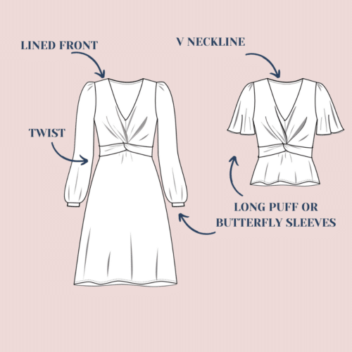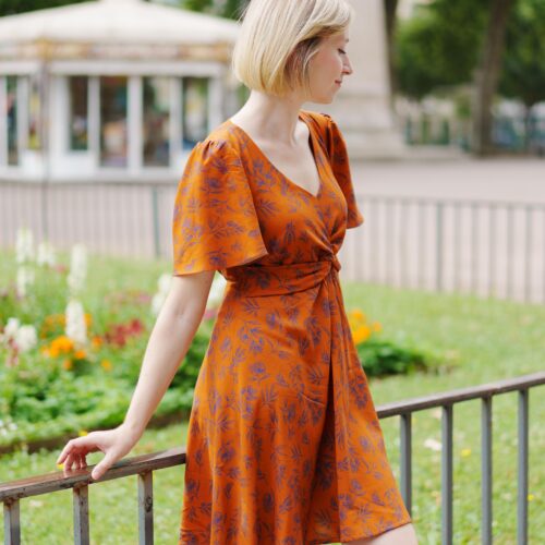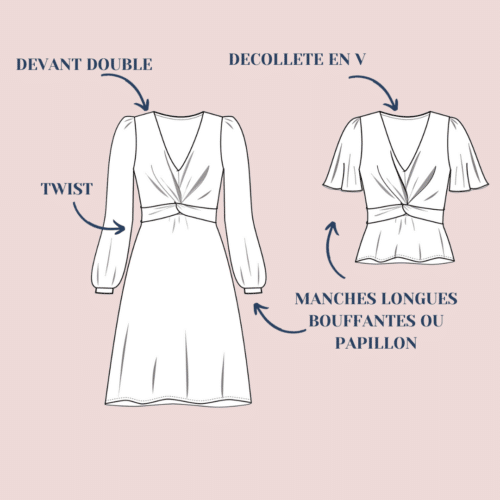 To sew this dress we advise to choose a fluid fabric such as viscose, satin cotton, viscose crepe… The pattern has been drafted for woven fabrics.