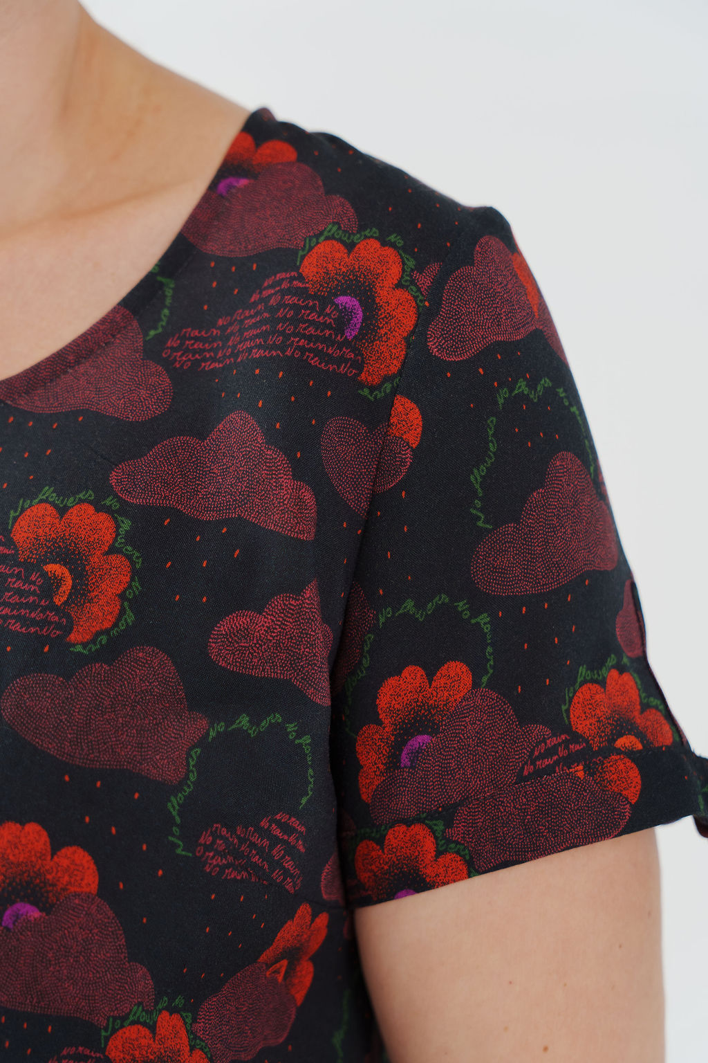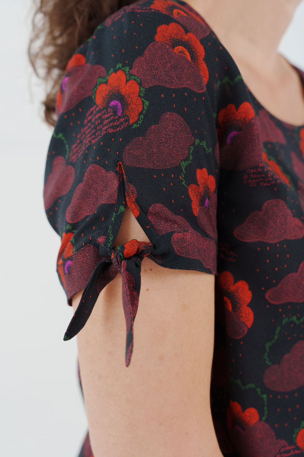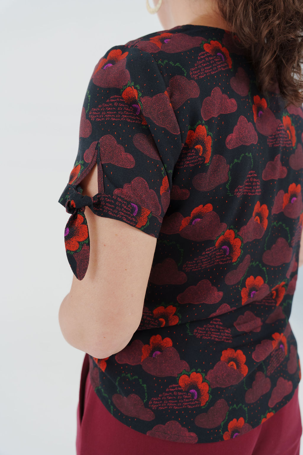 Dare the total look by wearing Easy peasy with a matching skirt or trousers in the fabric print for a “fake” dress or “fake” combination effect. Our little top sewn in a printed fabric will also go wonderfully with a bottom in a plain fabric or vice versa …