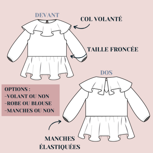 | Fabric (140cm wide) – Blouse version with sleeves | 1m / 1,1yd | 1m / 1,1yd | 1m / 1,1yd | 1m20 / 1,3yd | 1m20 / 1,3yd | 1m20 / 1,3yd | 1m20 / 1,3yd | 1m40 / 1,5yd | 1m40 / 1,5yd | 1m40 / 1,5yd | 1m40 / 1,5yd |