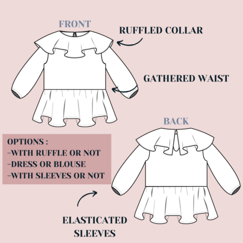 - a full size pattern (from size 2 to 12 years old – Seam allowances are included)