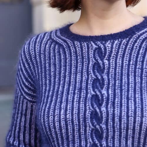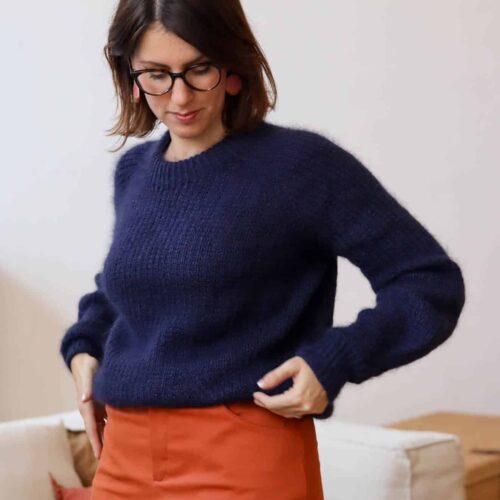 Lise P. wears our Malya sweater by Lise Tailor and a model of the book Urban knit.