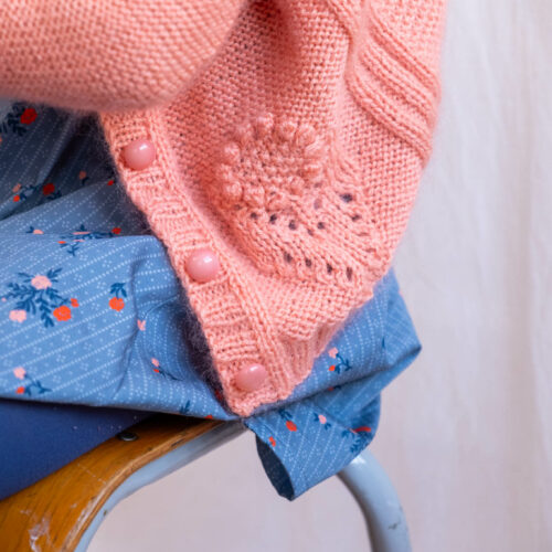Carmen and Rose are wearing the Fleur cardigan by Lise Tailor