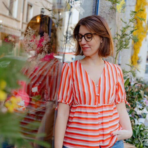 Lise P. wears the dress Marche aux Fleurs and the blouse Florie