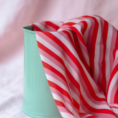 Red Poppy – This alternation of vibrant red stripes and delicate pink tones recalls the neatly arranged stalls of a flower market, where poppies and roses intertwine in harmony.