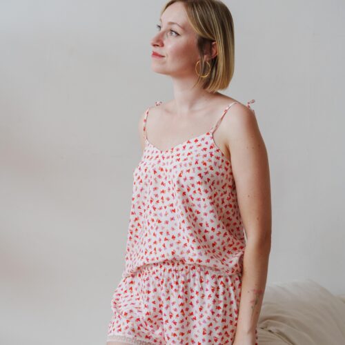 Combining both experience and skills, the « Je t’aime » sewing pattern, brings you a simple, yet beautiful Camisole and Shorts set.