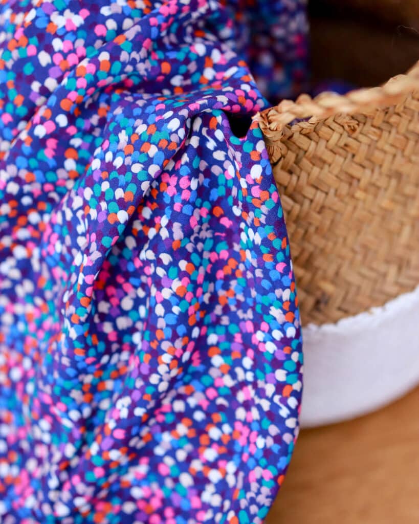 This motif is worn on everything and everywhere; from the blouse we love in spring, to the midi dress and our fitted pants. The colors of this viscose allow all combinations for its 100% handmade dressing room.