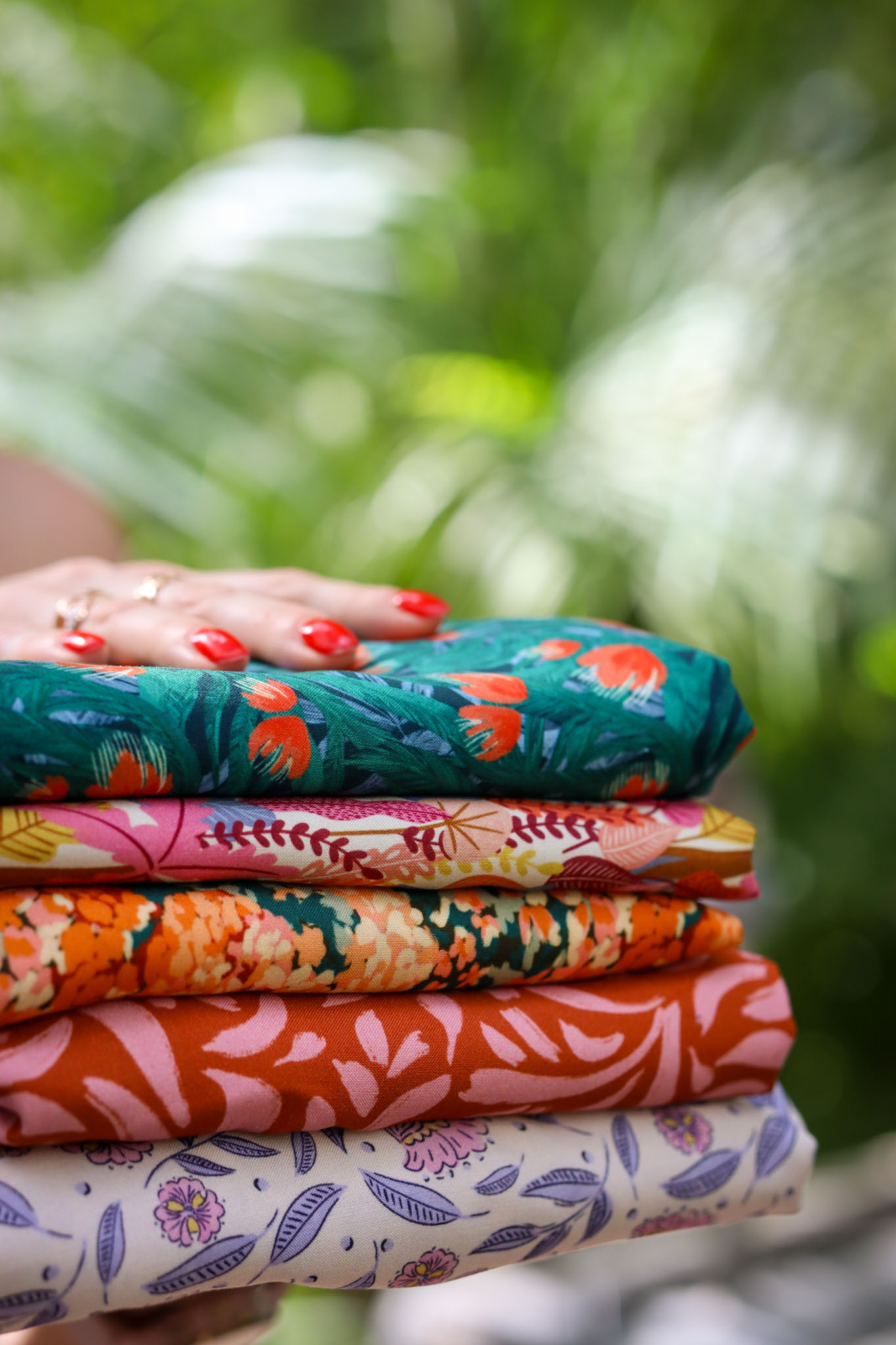« Au milieu des plantes d’ici et d’ailleurs, des silhouettes colorées prônent la nature. On se retrouve au centre d’un tourbillon parfois bucolique, parfois exotique. »