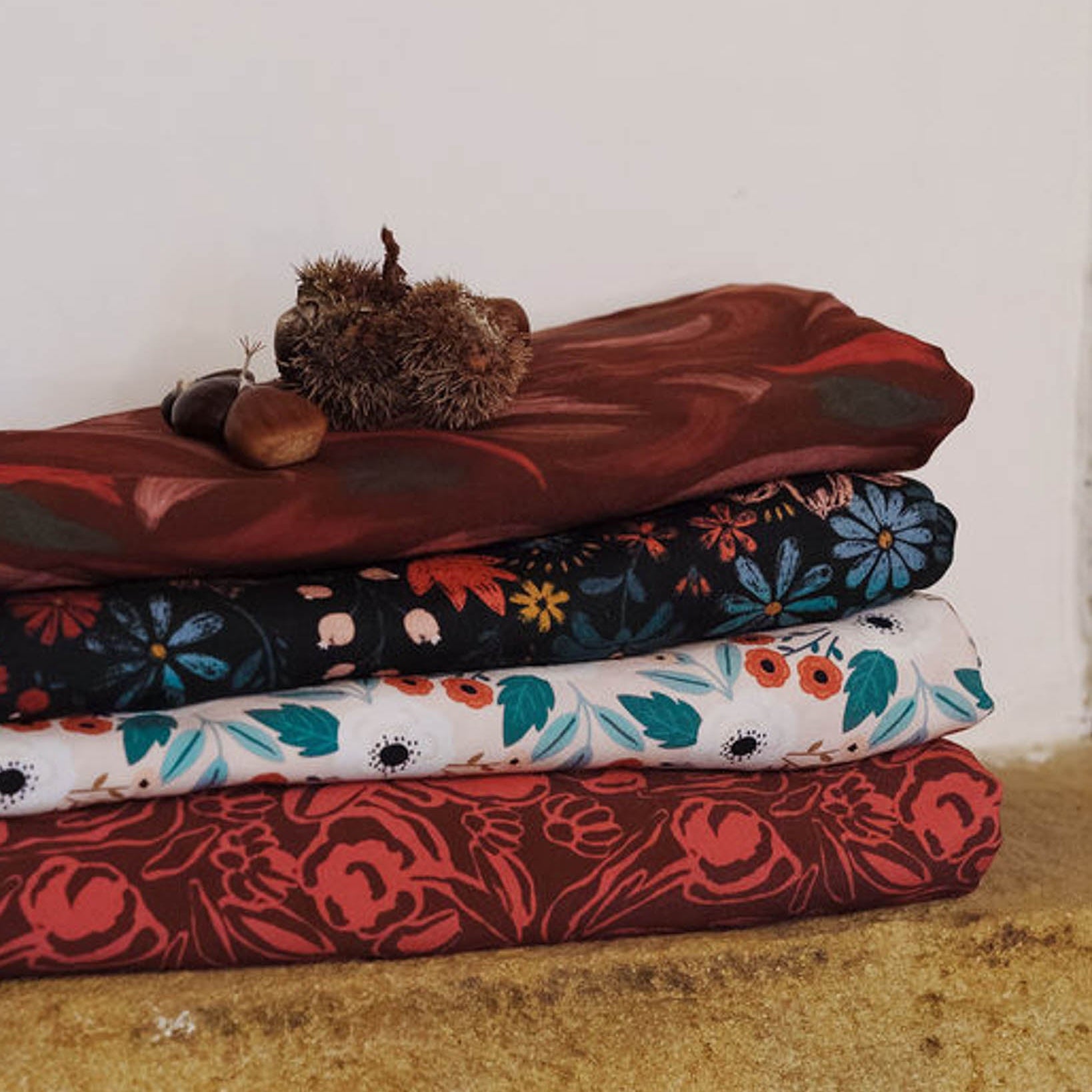 Nos tissus sont imprimés en petite-série, principalement en France, pour motivations éthiques et écologiques. Lorsqu’une collection est épuisée, il n’y a pas de réassort ; ce qui permet d’intégrer des nouveautés « et de s’amuser », tout en apportant rareté́ et singularité́ aux produits.
