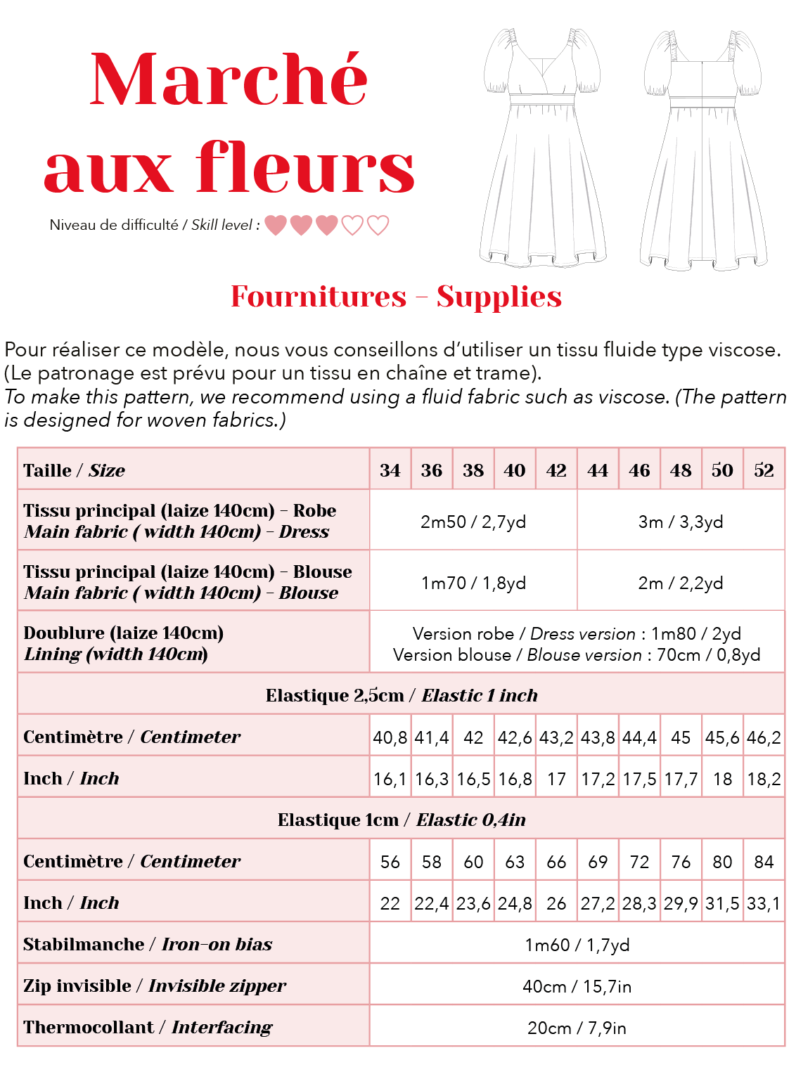 Laissez-vous charmer par notre robe printanière Marché aux Fleurs : un buste cache-cœur ajusté, une taille empire, une jupe évasée et des manches bouffantes pour une allure romantique et élégante. Le buste doublé et la fermeture invisible garantissent une finition soignée. Un projet couture parfait pour celles qui aiment soigner les détails et créer une pièce unique.