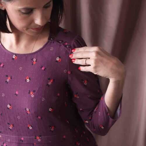 L’épaule gauche est habillée d’une pa’e de boutonnage pour me’re en valeur vos plus jolis boutons.