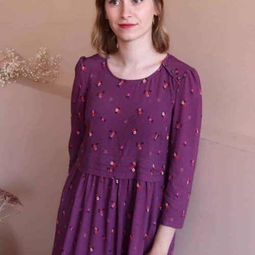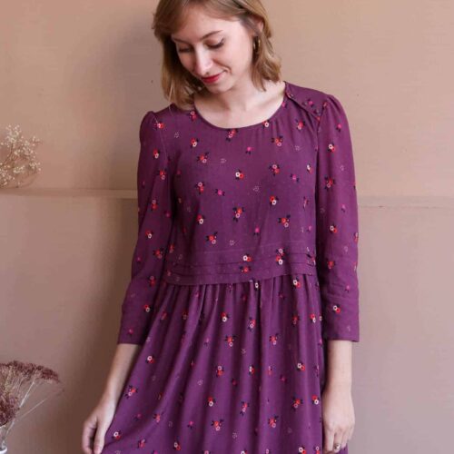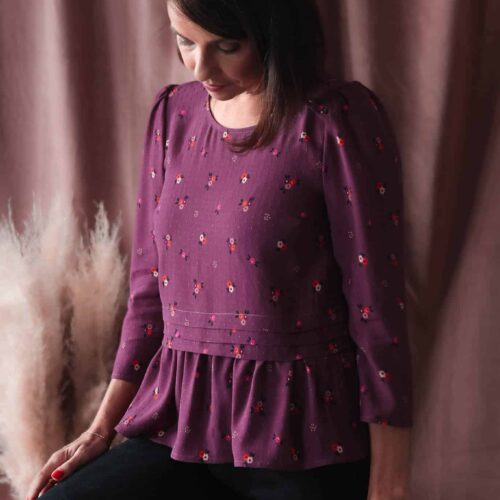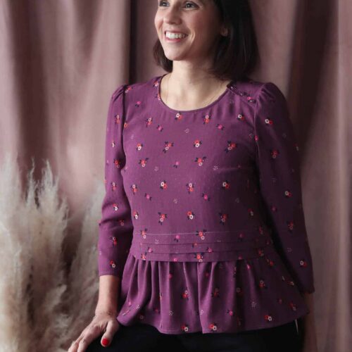Rêverie est une adorable petite blouse à la coupe légèrement ample, féminine et confortable avec un délicat jeu de plis religieuses pour souligner la taille.