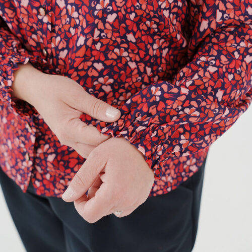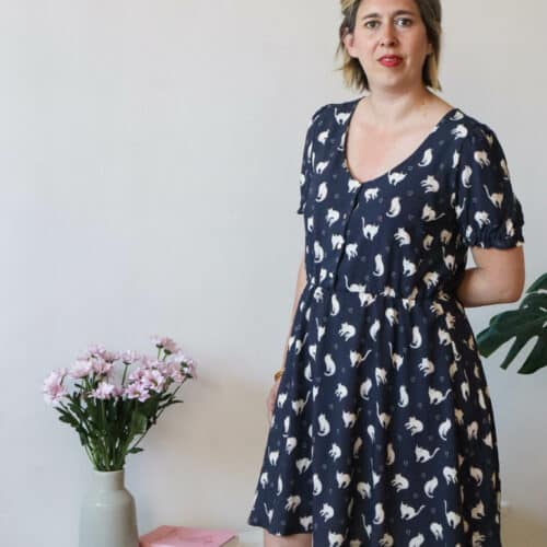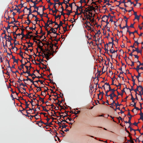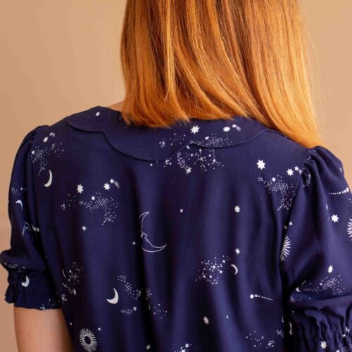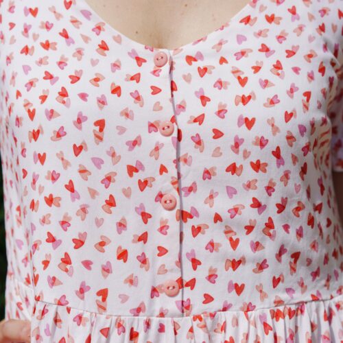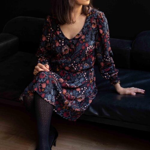 Une robe délicate et raffinée. Boutonnée devant, élastiquée à la taille et dotée d’un col festonné, le patron propose 2 versions de manches ainsi qu’une version blouse.