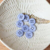 Bouton plat en plastique avec une adorable corolle striée telle des pétales. Vendu à l’unité.