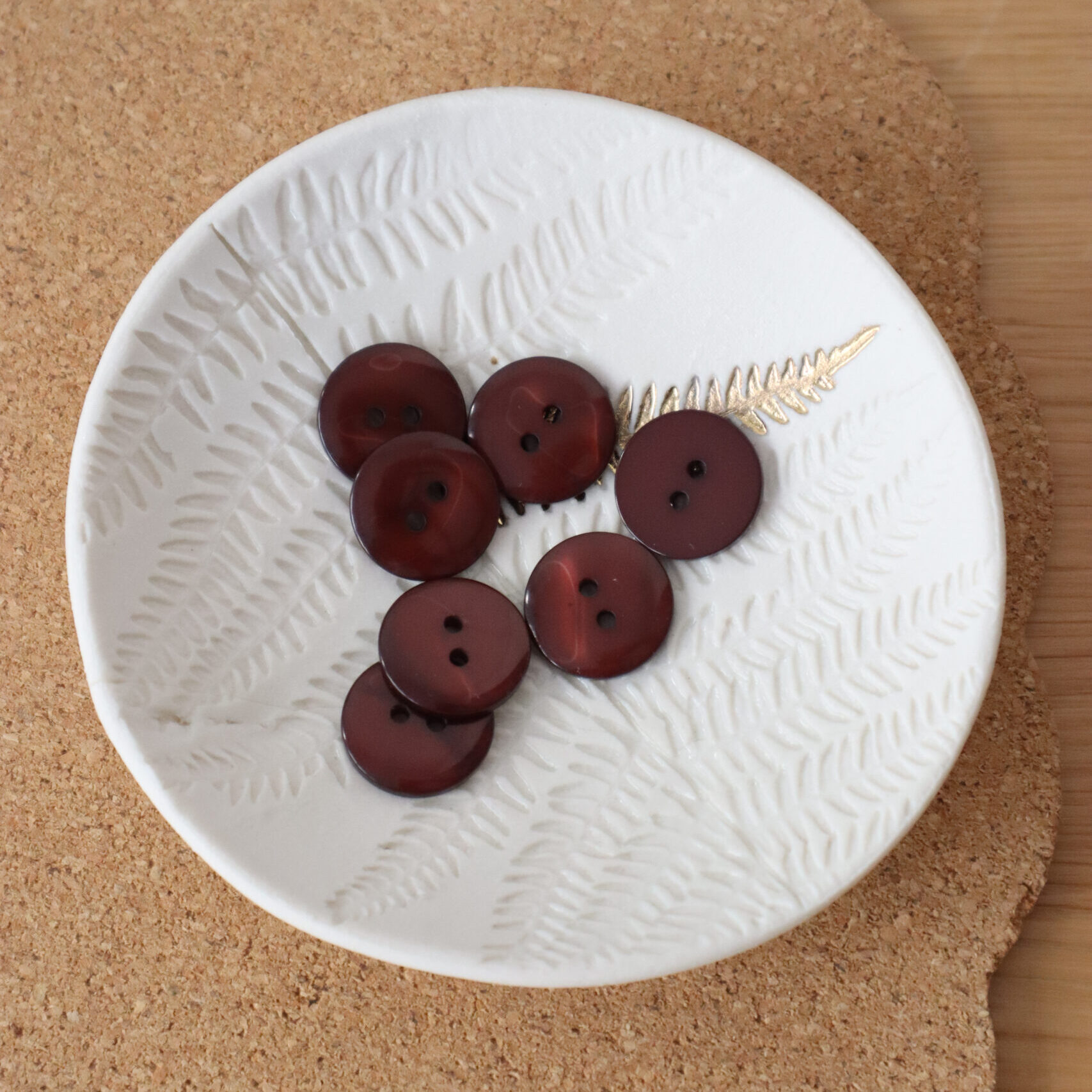 Bouton plat en polyester, à deux trous. Vendu à l’unité.