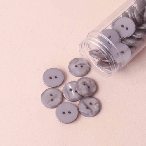 Bouton plat en polyester, à deux trous. Vendu à l’unité.