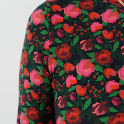 – Le jersey de viscose : Noir ou avec notre motif exclusif La Roseraie pour les tailles du 34 au 52