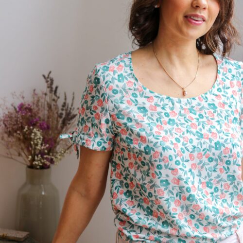Easy peasy est un t-shirt en tissu chaine et trame. C’est un basique à avoir dans sa garde-robe qui s’accordera avec vos petites jupes, shorts ou pantalons fait main. Vous aurez le choix entre deux options d’encolures : une encolure ronde (finition au biais ou avec un enforme) et une encolure en V (finition avec un enforme).