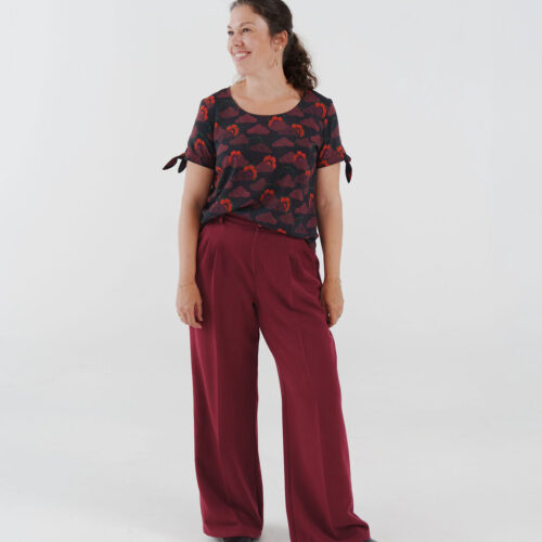 Osez le total look en portant le top easy peasy avec une jupe ou un pantalon dans le même motif façon « fausse » robe ou « fausse » combinaison. Notre top cousu dans un tissu imprimé se portera également à merveille avec un bas dans un tissu uni ou vice versa…