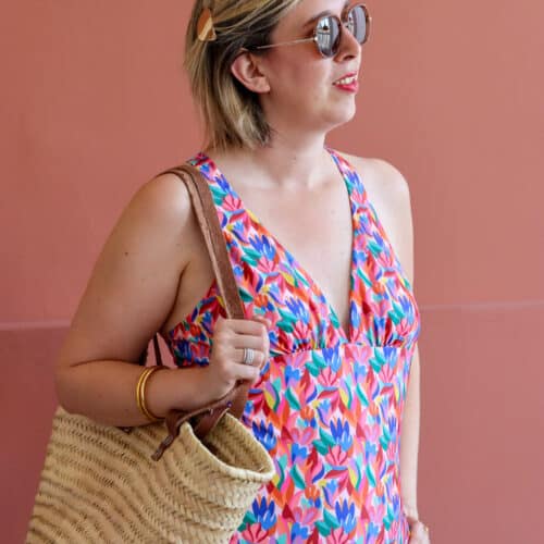 Bain de minuit est un maillot de bain une pièce avec un joli décolleté sur le devant. Le bonnet est froncé pour accueillir le volume de la poitrine et un large élastique permet d’obtenir un bon maintien.