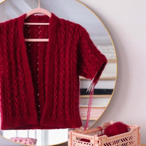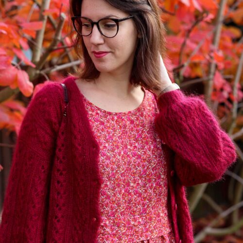 Lise P. porte le cardigan n°6 by My Favourite Things Knitwear.