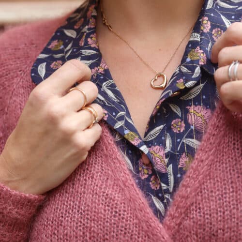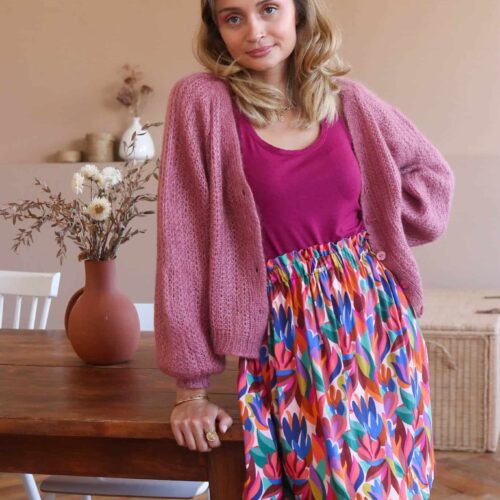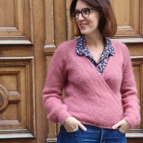 Lise P. porte de cache-coeur Naëlle et Mathilde porte le cardigan n°7 de My Favourite Things Knitwear.