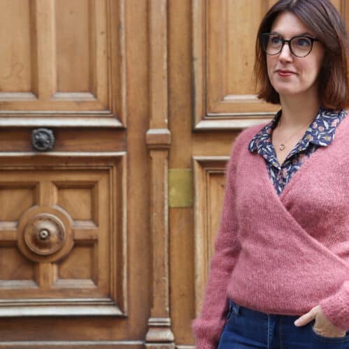 Axelle porte le slipover Berthie en uni (mélange Mérinos + Mohair & Soie)