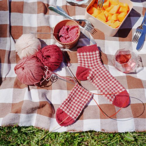 Tricotées en toes-up (de la pointe vers le haut) avec un talon en rangs raccourcis à l’allemande, elles seront idéales pour les amatrices de jacquard à la recherche d’un projet léger et amusant, facile à glisser dans un sac de plage ou à tricoter sur la terrasse, un verre de limonade à portée de main.