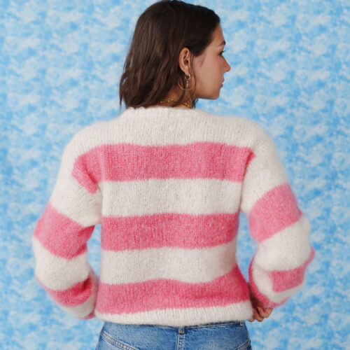 Lyvie est un pull doux et aérien, parfait pour se blottir grâce à son fil Cumulus mousseux. Tricoté avec des aiguilles de taille supérieure pour obtenir un effet de légèreté et un tricot lâche, il présente de larges rayures colour block qui ajoutent une touche moderne et stylée à ce modèle cocooning. Le pull Lyvie est le projet parfait pour les tricoteuses débutantes qui souhaitent se lancer dans leur premier vêtement.